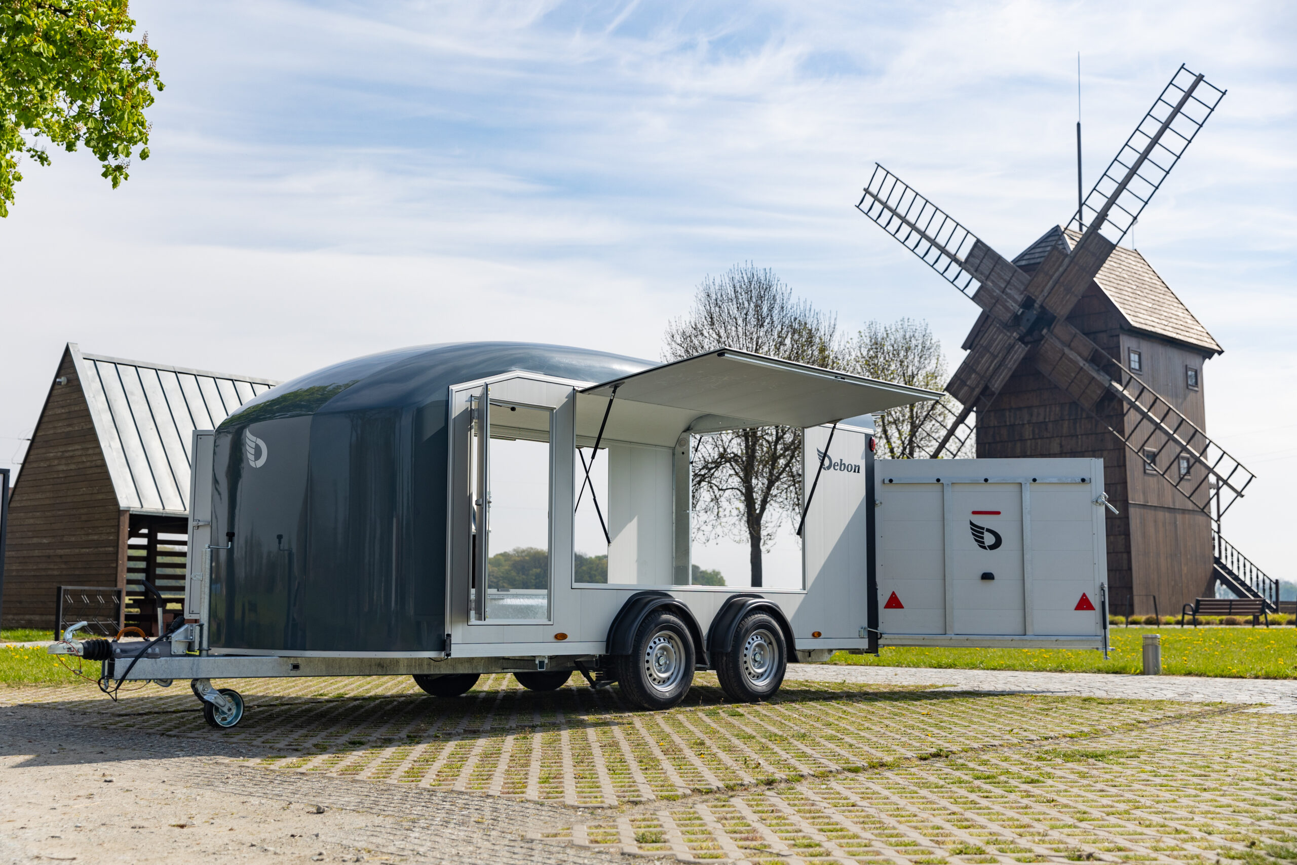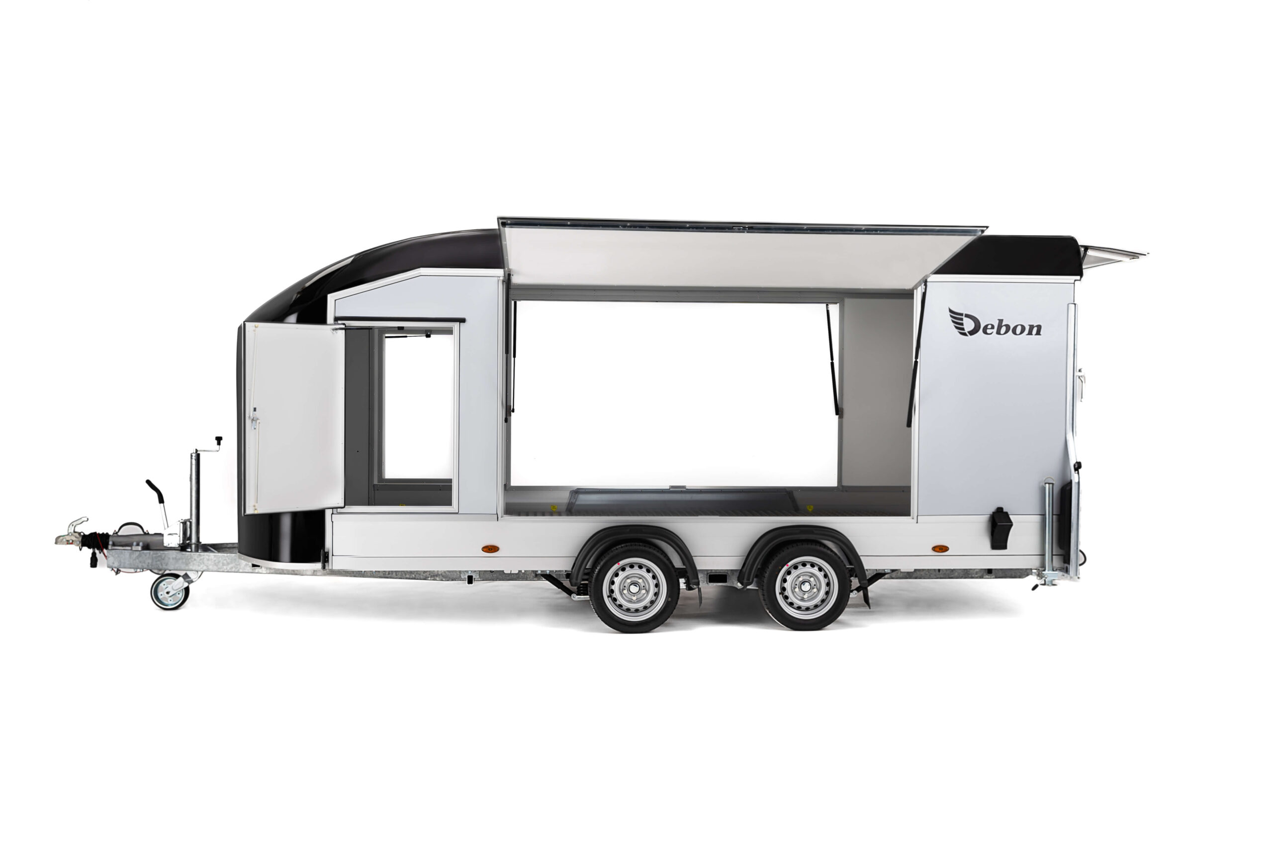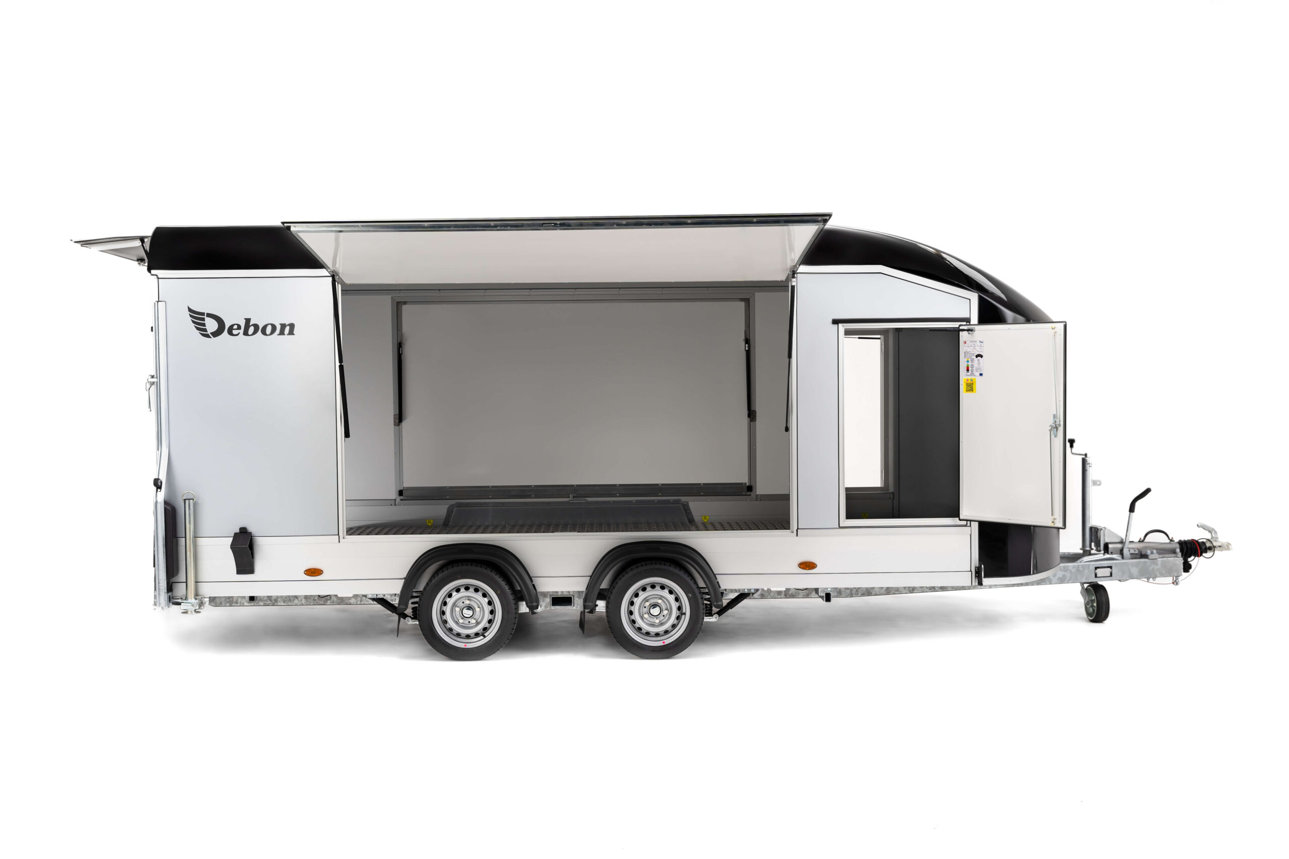 Debon Roadster C1000 on uuden sukupolven umpinainen autonkuljetustraileri, joka yhdistää näyttävän muotoilun, älykkäät ratkaisut ja tinkimättömän käytettävyyden. Olipa kyse moottoriurheilusta tai ajoneuvojen kuljetuslogistiikasta. Traileri on varustettu myös tunnetulla Pullman 2 -jousitusjärjestelmällä, joka vaimentaa tehokkaasti iskuja ja takaa poikkeuksellisen ajomukavuuden. Sisältää: Komposiittiseinät, 2 sivuluukkua, 2 sivuovea, LED-valaistus sisällä, tukijalat ja peltivanteet. 3500 kg kokonaismassa tekee siitä täydellisen kumppanin autoille. Suuret sivuille aukeavat ovet yhdessä molemmin puolin sijaitsevien sivuovien kanssa tekevät lastauksesta ja purkamisesta sujuvaa ja esteetöntä. Sisäpuolen tehokas LED-valaistus varmistaa, että työskentely onnistuu myös hämärässä ja yöllä. Takarampin mitat, (L) 205 cm ja (K) 190 cm, mahdollistavat monenlaisten ajoneuvojen kuormaamisen – pienistä kilpureista isompiin kuljetustarpeisiin. Vaunun järeä rakenne ja viimeistelty yksityiskohtaisuus tekevät siitä luotettavan työkalun päivittäiseen käyttöön, ja samalla sen moderni ulkoasu tuo lisäarvoa niin ammattilaiselle kuin harrastajallekin. Alumiinilattialla ja 18mm vaneriset sivuseinät UV-suojakalvolla ja komposiittiseinillä varustettu traileri kestää erinomaisesti vaativissakin olosuhteissa.