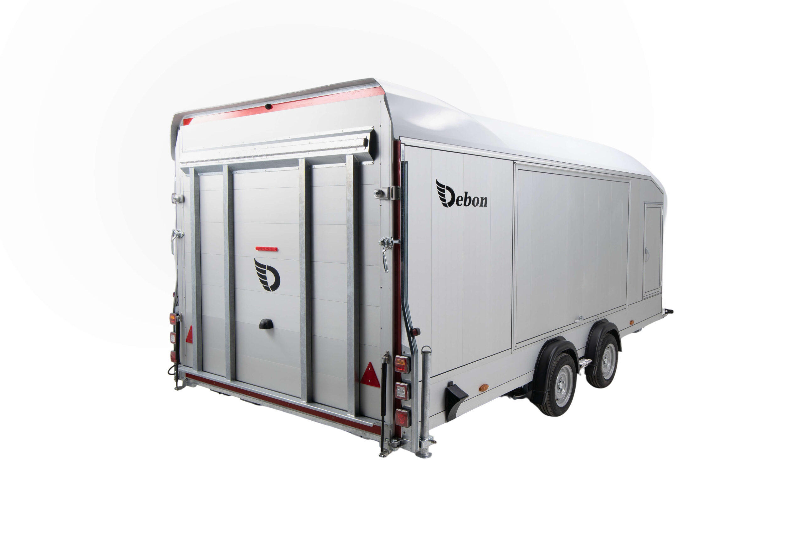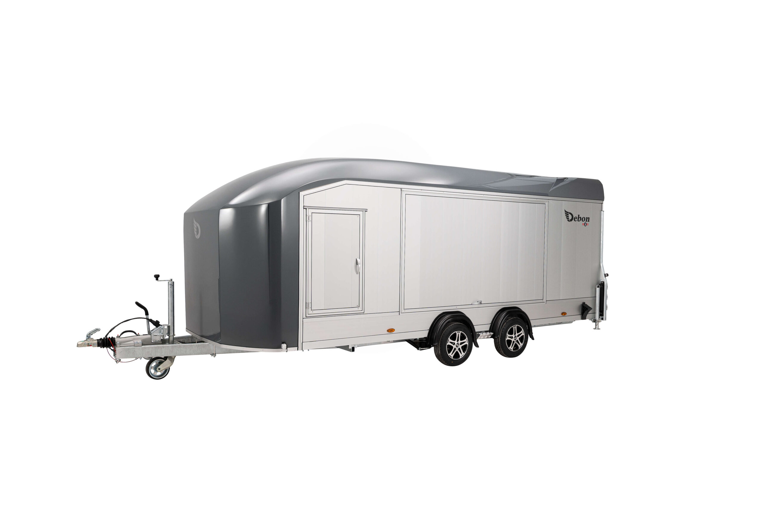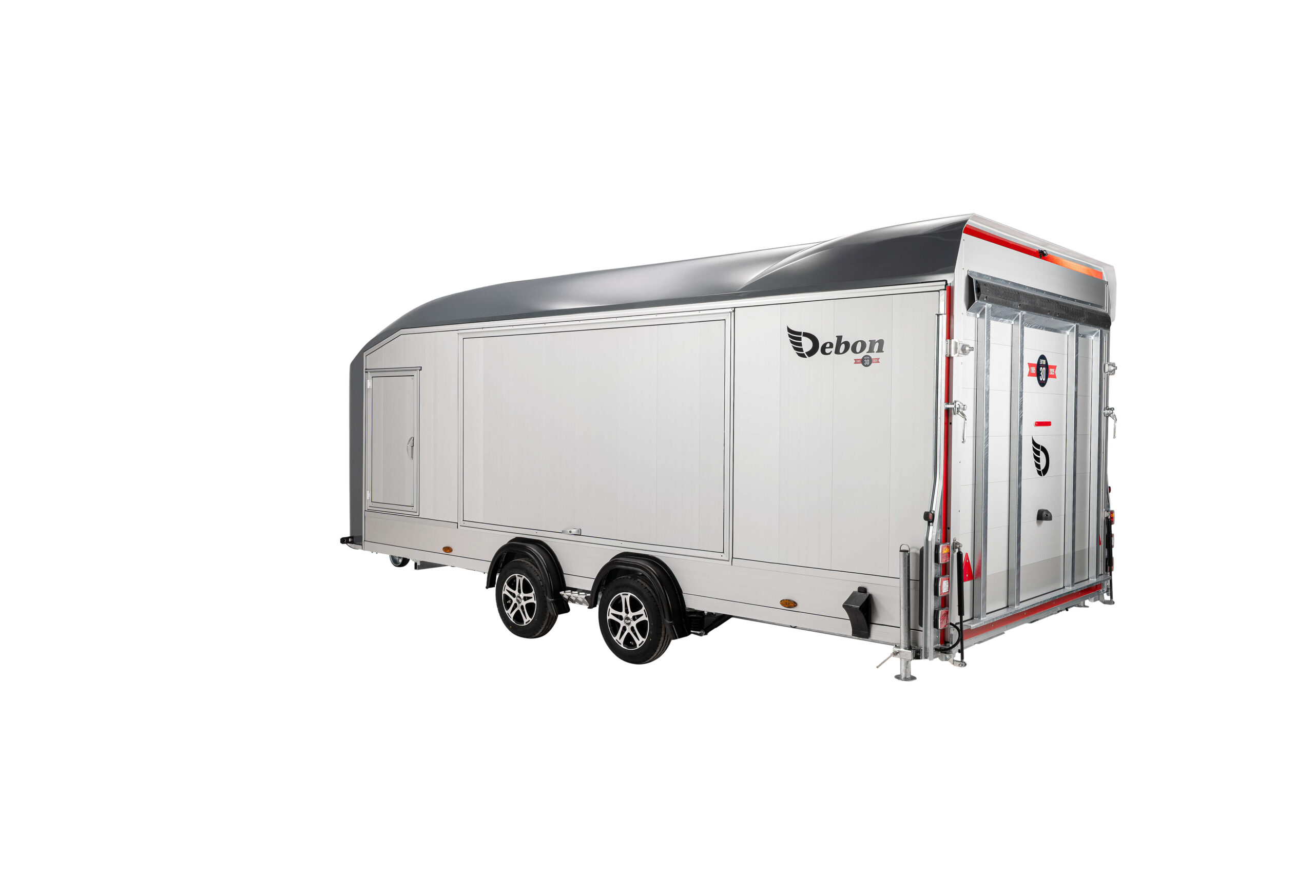 Debon Roadster C2000 on uuden sukupolven umpinainen autonkuljetustraileri, joka yhdistää näyttävän muotoilun, älykkäät ratkaisut ja tinkimättömän käytettävyyden. Olipa kyse moottoriurheilusta tai ajoneuvojen kuljetuslogistiikasta. Traileri on varustettu myös tunnetulla Pullman 2 -jousitusjärjestelmällä, joka vaimentaa tehokkaasti iskuja ja takaa poikkeuksellisen ajomukavuuden. Suuret sivuille aukeavat ovet yhdessä molemmin puolin sijaitsevien sivuovien kanssa tekevät lastauksesta ja purkamisesta sujuvaa ja esteetöntä. Sisäpuolen tehokas LED-valaistus varmistaa, että työskentely onnistuu myös hämärässä ja yöllä. Takaluukun mitat, (L) 220 cm ja (K) 190 cm, mahdollistavat monenlaisten ajoneuvojen kuormaamisen – pienistä kilpureista isompiin kuljetustarpeisiin. Vaunun järeä rakenne ja viimeistelty yksityiskohtaisuus tekevät siitä luotettavan työkalun päivittäiseen käyttöön, ja samalla sen moderni ulkoasu tuo lisäarvoa niin ammattilaiselle kuin harrastajallekin. Alumiinilattialla ja anodisoiduilla alumiiniseinillä varustettu traileri kestää erinomaisesti vaativissakin olosuhteissa. Sisämitoiltaan 5500 x 2200 x 2045 mm oleva Roadster 2000 tarjoaa runsaasti tilaa suurikokoisille ajoneuvoille, kuten superautoille, sekä erikoisvarusteille ja -laitteille.