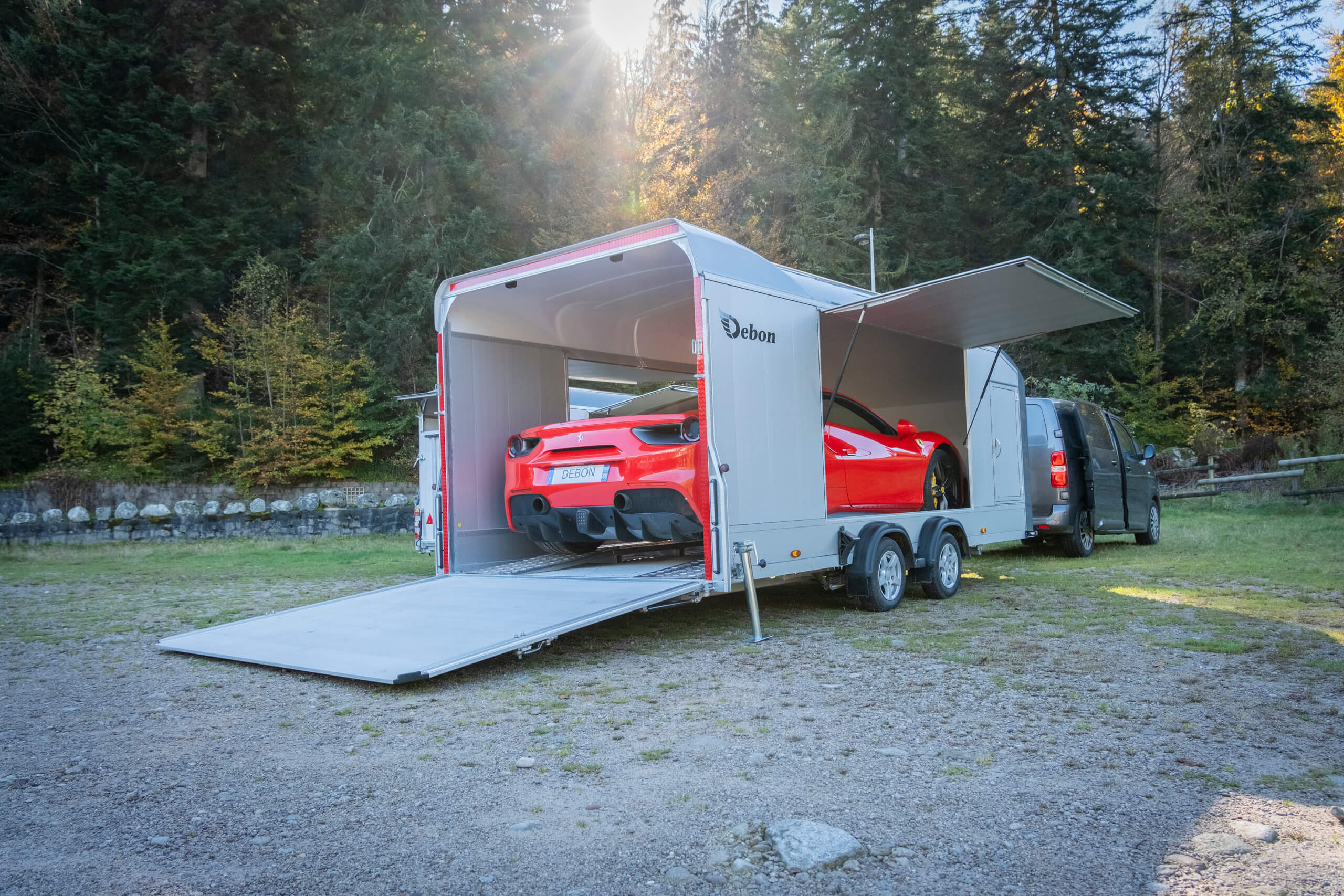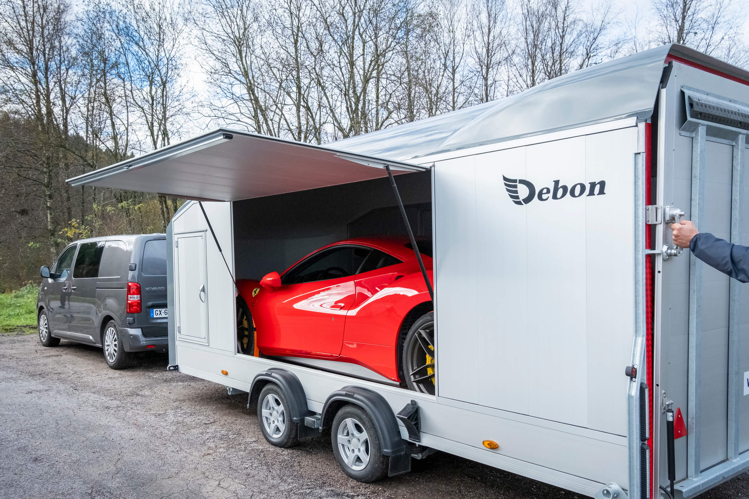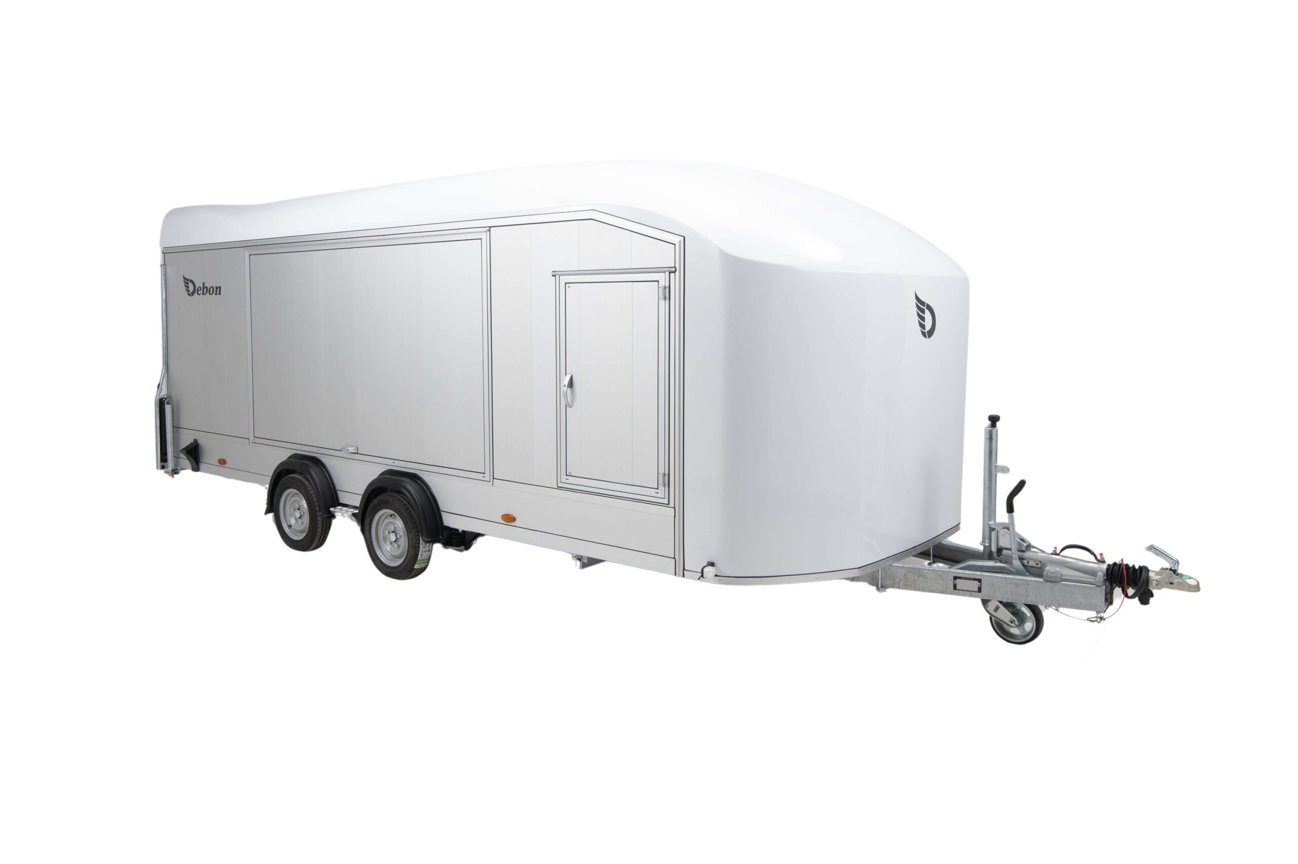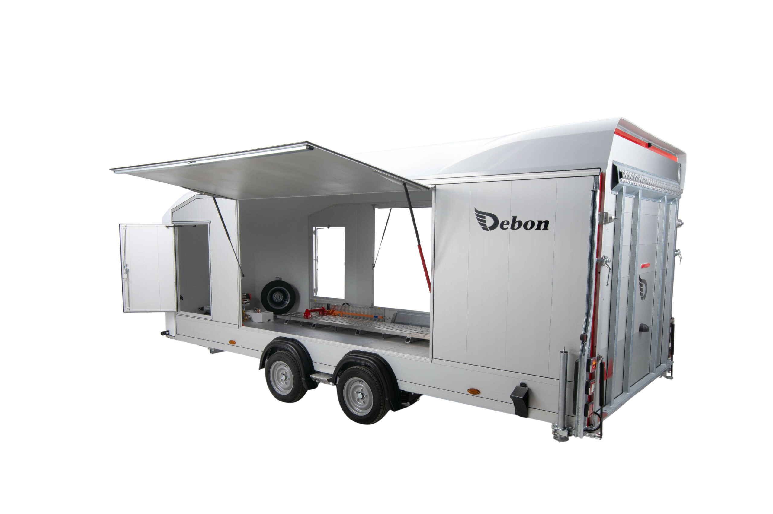 Debon Roadster C2000 on uuden sukupolven umpinainen autonkuljetustraileri, joka yhdistää näyttävän muotoilun, älykkäät ratkaisut ja tinkimättömän käytettävyyden. Olipa kyse moottoriurheilusta tai ajoneuvojen kuljetuslogistiikasta. Traileri on varustettu myös tunnetulla Pullman 2 -jousitusjärjestelmällä, joka vaimentaa tehokkaasti iskuja ja takaa poikkeuksellisen ajomukavuuden. Suuret sivuille aukeavat ovet yhdessä molemmin puolin sijaitsevien sivuovien kanssa tekevät lastauksesta ja purkamisesta sujuvaa ja esteetöntä. Sisäpuolen tehokas LED-valaistus varmistaa, että työskentely onnistuu myös hämärässä ja yöllä. Takaluukun mitat, (L) 220 cm ja (K) 190 cm, mahdollistavat monenlaisten ajoneuvojen kuormaamisen – pienistä kilpureista isompiin kuljetustarpeisiin. Vaunun järeä rakenne ja viimeistelty yksityiskohtaisuus tekevät siitä luotettavan työkalun päivittäiseen käyttöön, ja samalla sen moderni ulkoasu tuo lisäarvoa niin ammattilaiselle kuin harrastajallekin. Alumiinilattialla ja anodisoiduilla alumiiniseinillä varustettu traileri kestää erinomaisesti vaativissakin olosuhteissa. Sisämitoiltaan 5500 x 2200 x 2045 mm oleva Roadster 2000 tarjoaa runsaasti tilaa suurikokoisille ajoneuvoille, kuten superautoille, sekä erikoisvarusteille ja -laitteille.