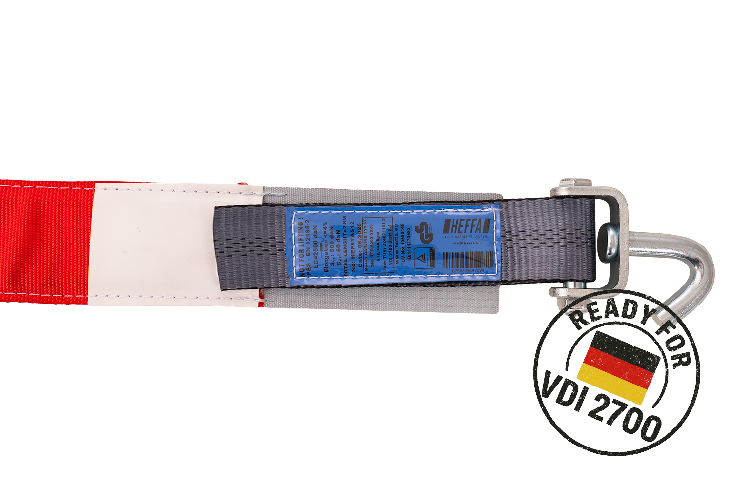 HEFFA CARLINE 130 on ammattikäyttöön suunniteltu rengaskiinnitysliina, joka tarjoaa varman ja turvallisen ajoneuvon kiinnityksen hinausautoihin, autotrailereihin ja LOHR-alustoille (Martz ja Unitrailer). 3-pisteinen kiinnitysliina takaa erinomaisen ajoneuvon stabiloinnin kuljetuksen aikana, ja 5000kg (5000 daN) kuormankantokyky mahdollistaa myös raskaampien henkilöautojen luotettavan kiinnityksen. 2,8 metrin pituus ja 50 mm leveys sopivat monipuoliseen ajoneuvokuljetukseen, ja mukana tuleva 130 cm pitkä suojus (”grass”) sivuläpillä estää liinan ja renkaan liukumisen sekä suojaa pintoja kuljetuksen aikana. Karhennettu kumipinta lisää kitkaa ja pitää renkaan tukevasti paikoillaan myös haastavissa olosuhteissa. HEFFA CARLINE 130 on täydellinen valinta: hinausautoihin autotrailereihin ja LOHR-alustoille, monipisteisiin ajoneuvon varmistusjärjestelmiin, ammattikuljetuksiin ja logistiikkaan.