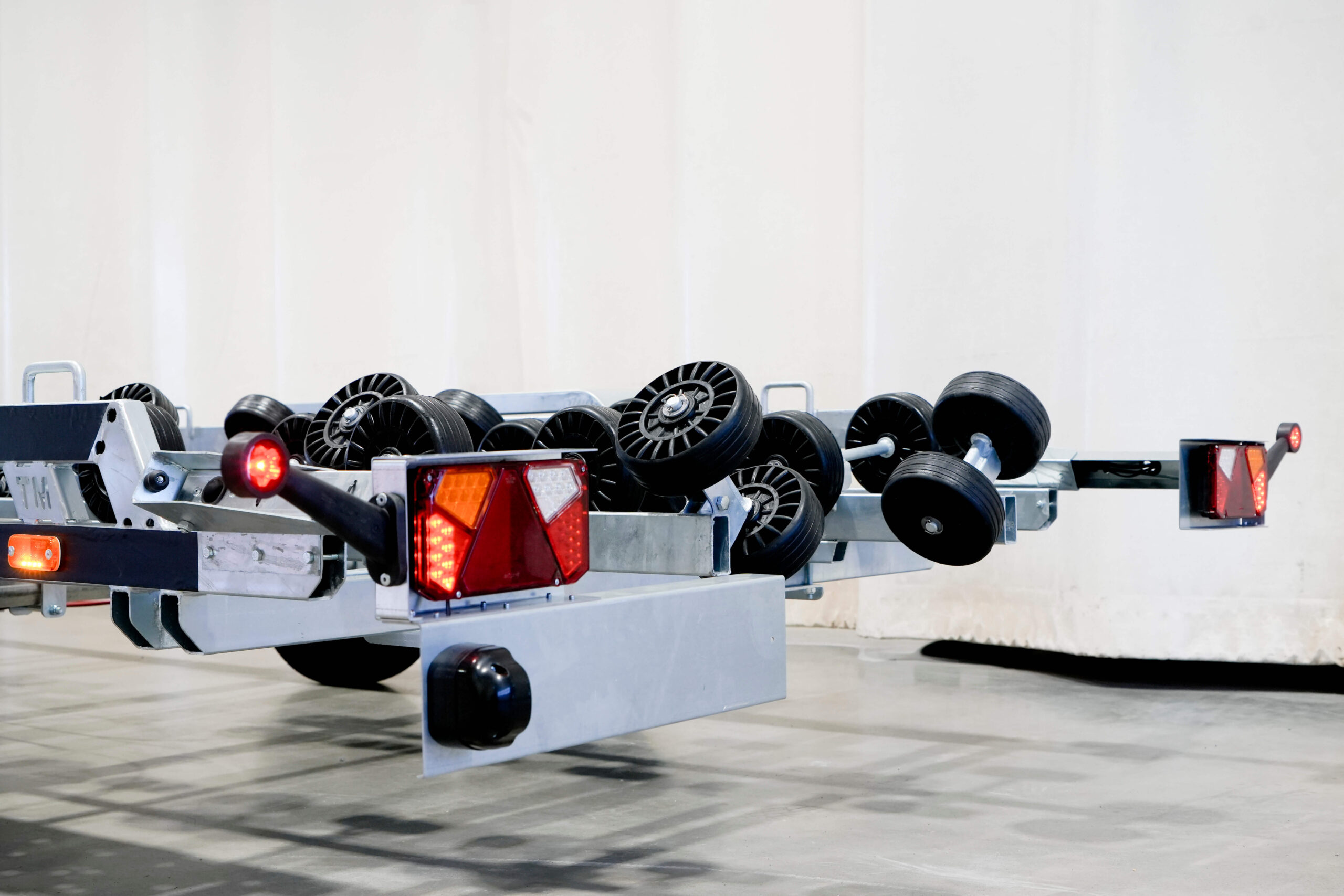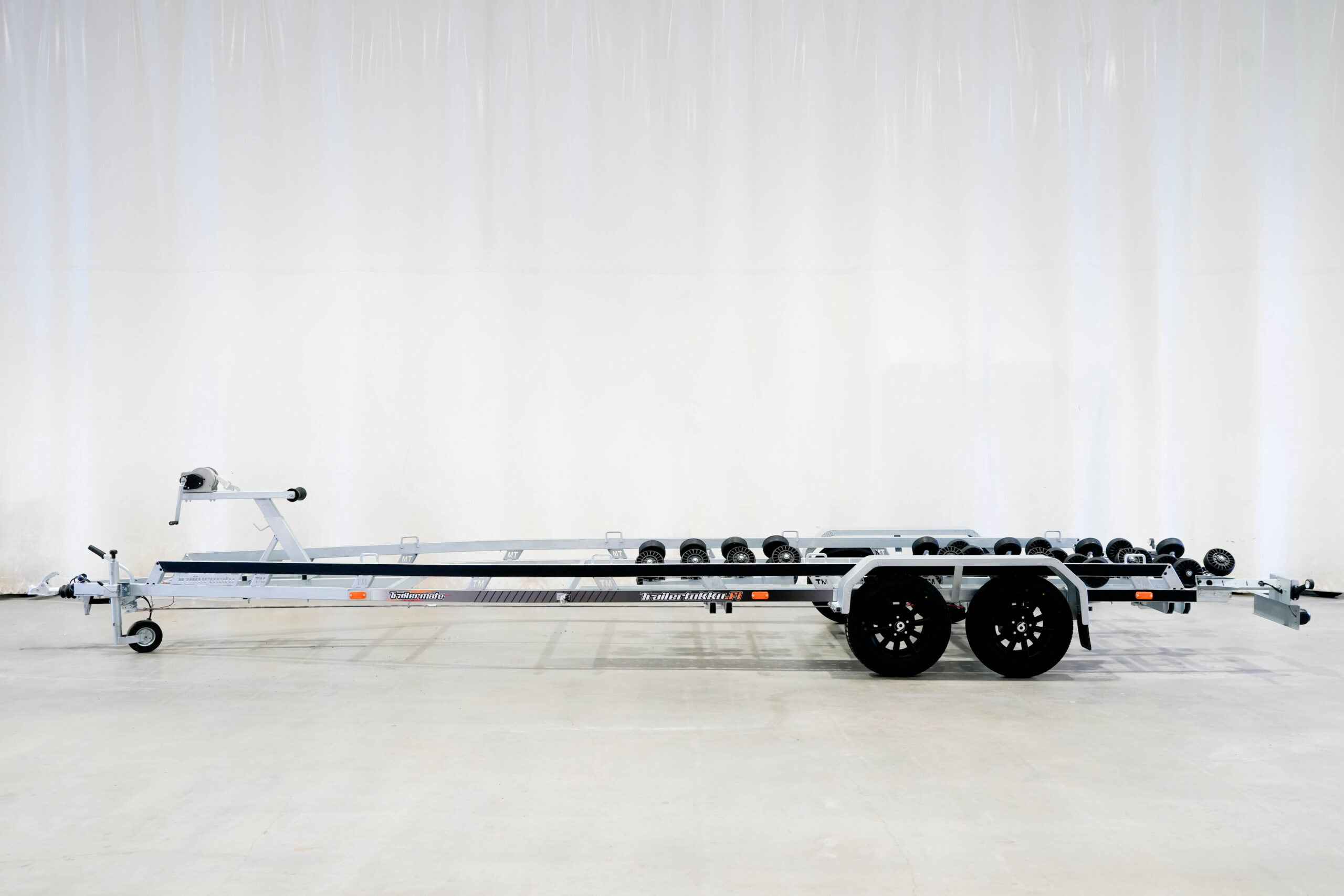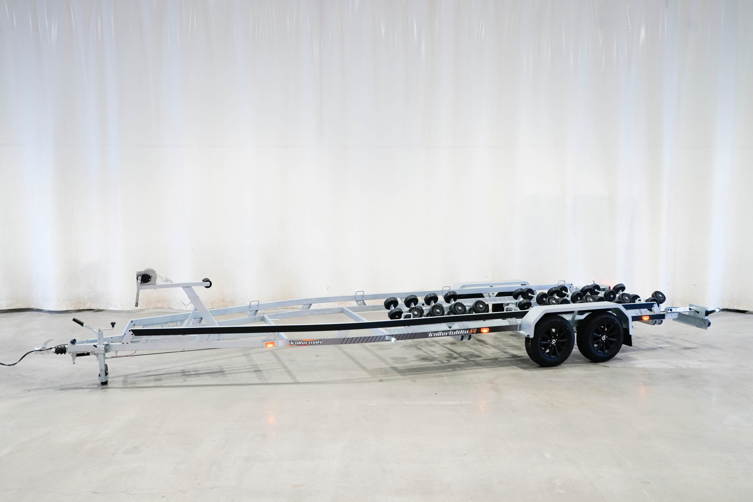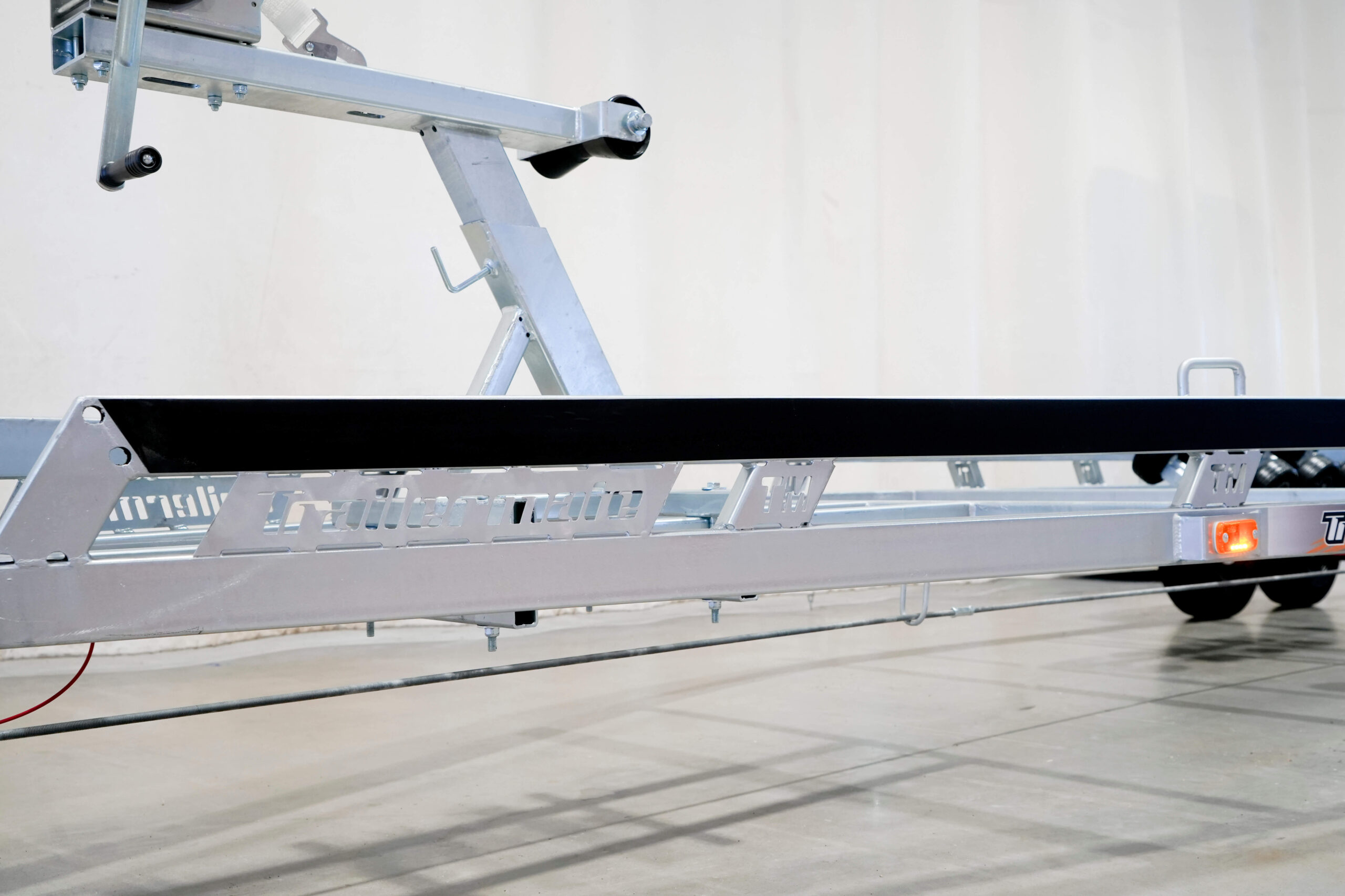 Trailermate-sarjan huippu-uutuus vaativaan käyttöön. Trailermate 2700 kg Multirulla -venetraileri on suunniteltu jopa 8,2 metriä pitkien veneiden turvalliseen ja vaivattomaan kuljettamiseen. Se soveltuu erinomaisesti niin aktiiviharrastajille kuin ammattikäyttöön. Vahva hitsattu ja kastamalla sinkitty runko takaa pitkän käyttöiän ja erinomaisen korroosiosuojan pohjoisissa olosuhteissa. Trailerin 1915 kg kantavuus ja 2700 kg kokonaismassa tarjoavat riittävästi kapasiteettia suuremmillekin veneille. Innovatiivinen Multirulla-rakenne (44 rullaa) jakaa veneen painon tasaisesti, suojaa runkoa ja helpottaa merkittävästi kuormausta sekä vesillelaskua. Kestävät mutta pehmeät rullat ohjaavat veneen luonnollisesti oikeaan asentoon ja ehkäisevät pintavaurioita. Trailermate Multirulla -venetraileri on rakennettu kestämään – turvallinen, helppokäyttöinen ja luotettava valinta veneilyyn Suomessa.