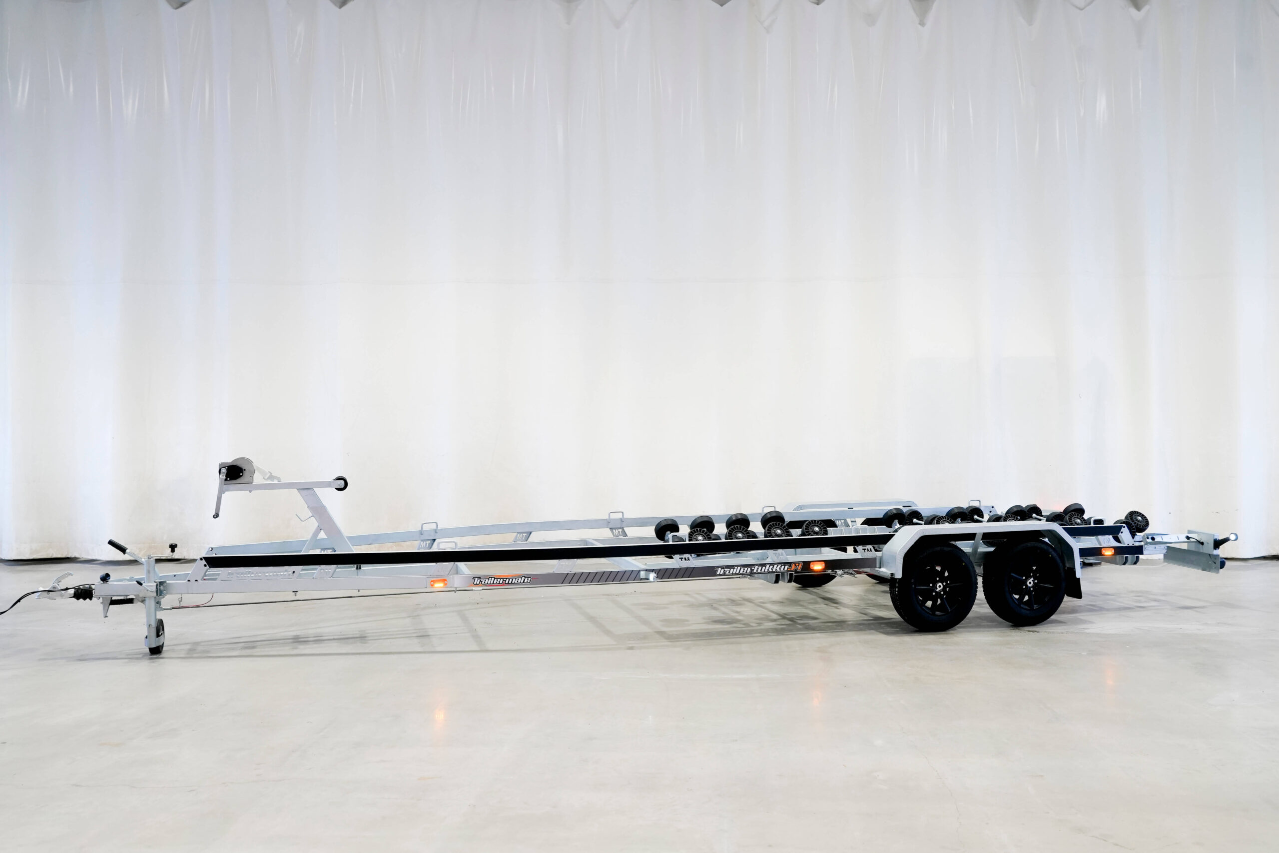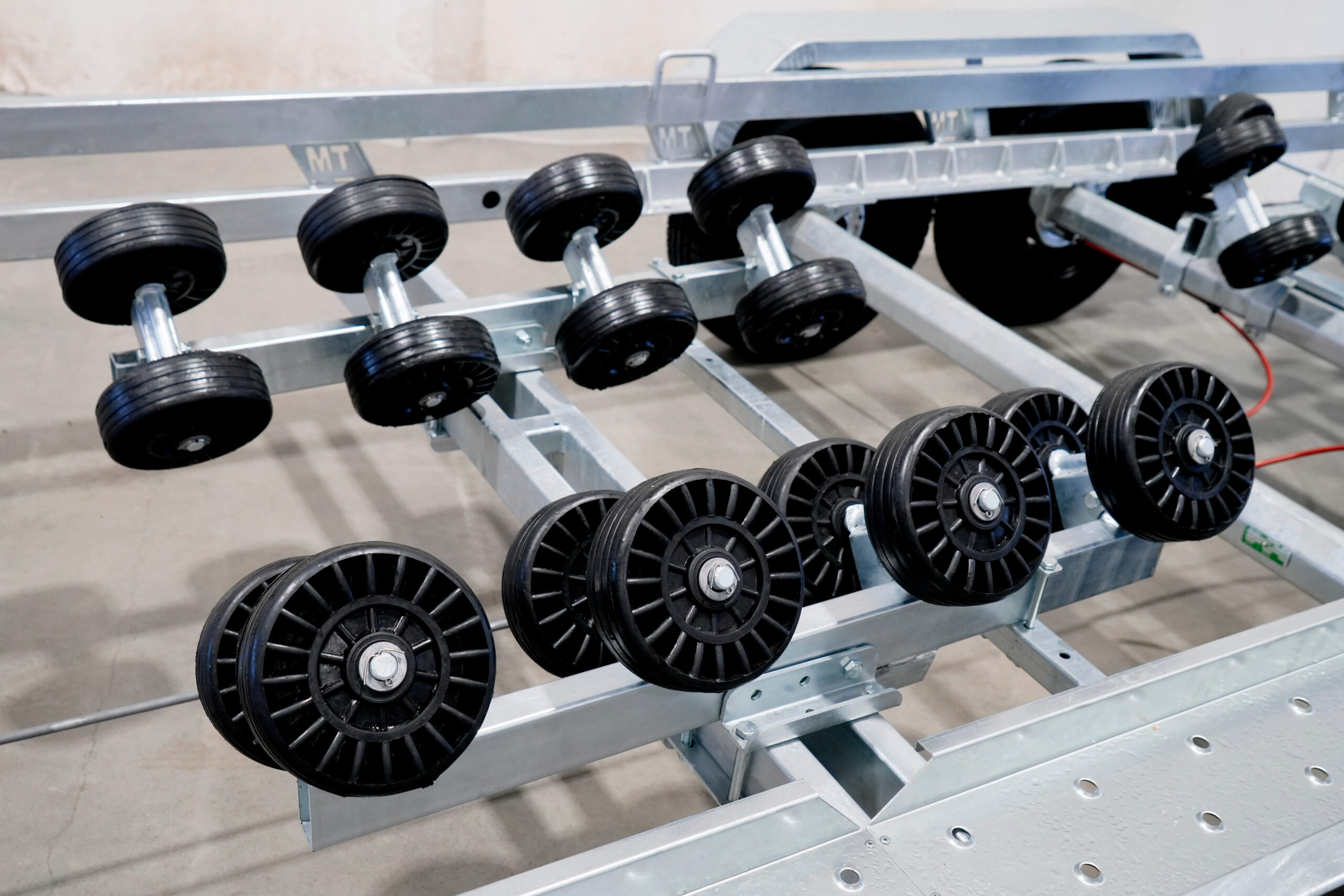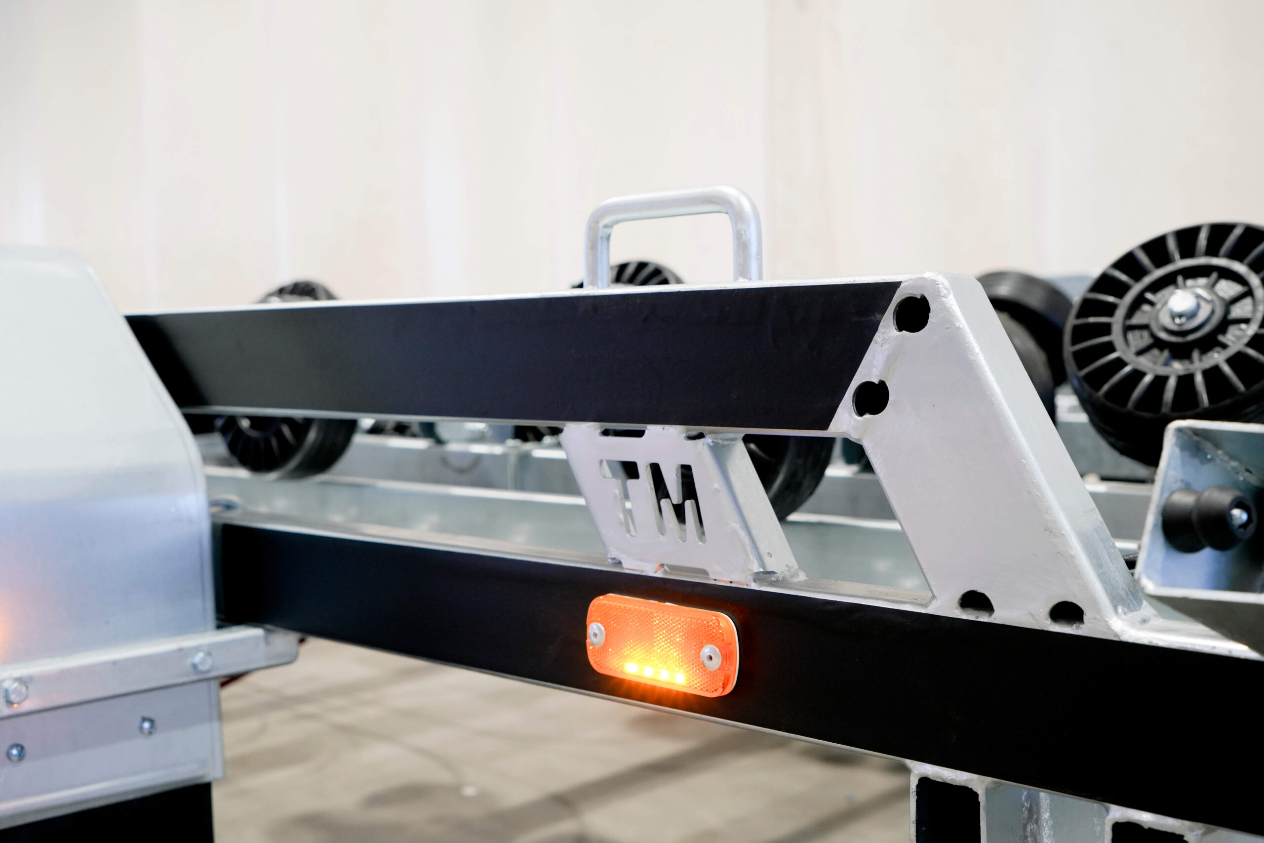 Trailermate-sarjan huippu-uutuus vaativaan käyttöön. Trailermate 2700 kg Multirulla -venetraileri on suunniteltu jopa 8,2 metriä pitkien veneiden turvalliseen ja vaivattomaan kuljettamiseen. Se soveltuu erinomaisesti niin aktiiviharrastajille kuin ammattikäyttöön. Vahva hitsattu ja kastamalla sinkitty runko takaa pitkän käyttöiän ja erinomaisen korroosiosuojan pohjoisissa olosuhteissa. Trailerin 1915 kg kantavuus ja 2700 kg kokonaismassa tarjoavat riittävästi kapasiteettia suuremmillekin veneille. Innovatiivinen Multirulla-rakenne (44 rullaa) jakaa veneen painon tasaisesti, suojaa runkoa ja helpottaa merkittävästi kuormausta sekä vesillelaskua. Kestävät mutta pehmeät rullat ohjaavat veneen luonnollisesti oikeaan asentoon ja ehkäisevät pintavaurioita. Trailermate Multirulla -venetraileri on rakennettu kestämään – turvallinen, helppokäyttöinen ja luotettava valinta veneilyyn Suomessa.