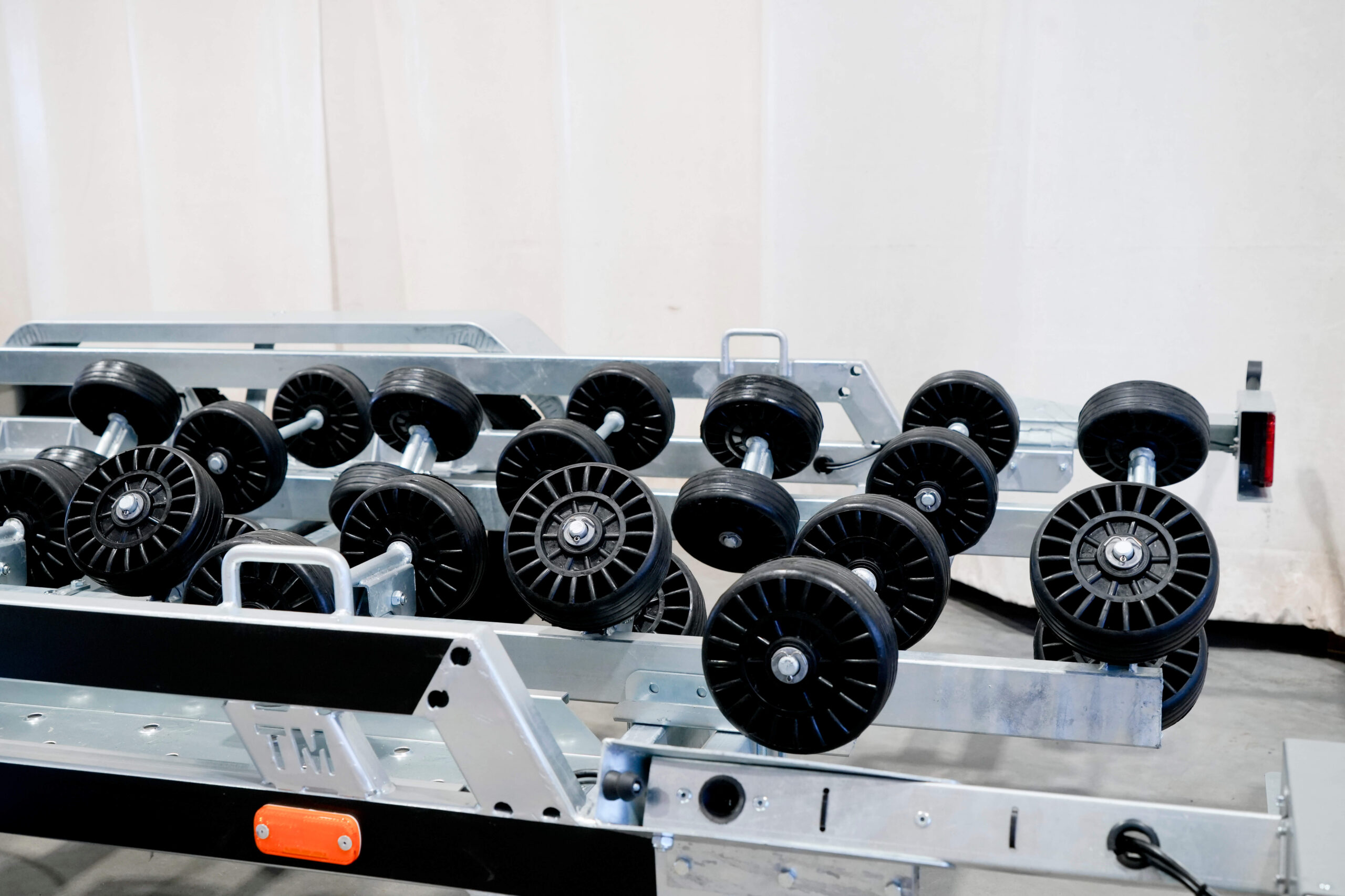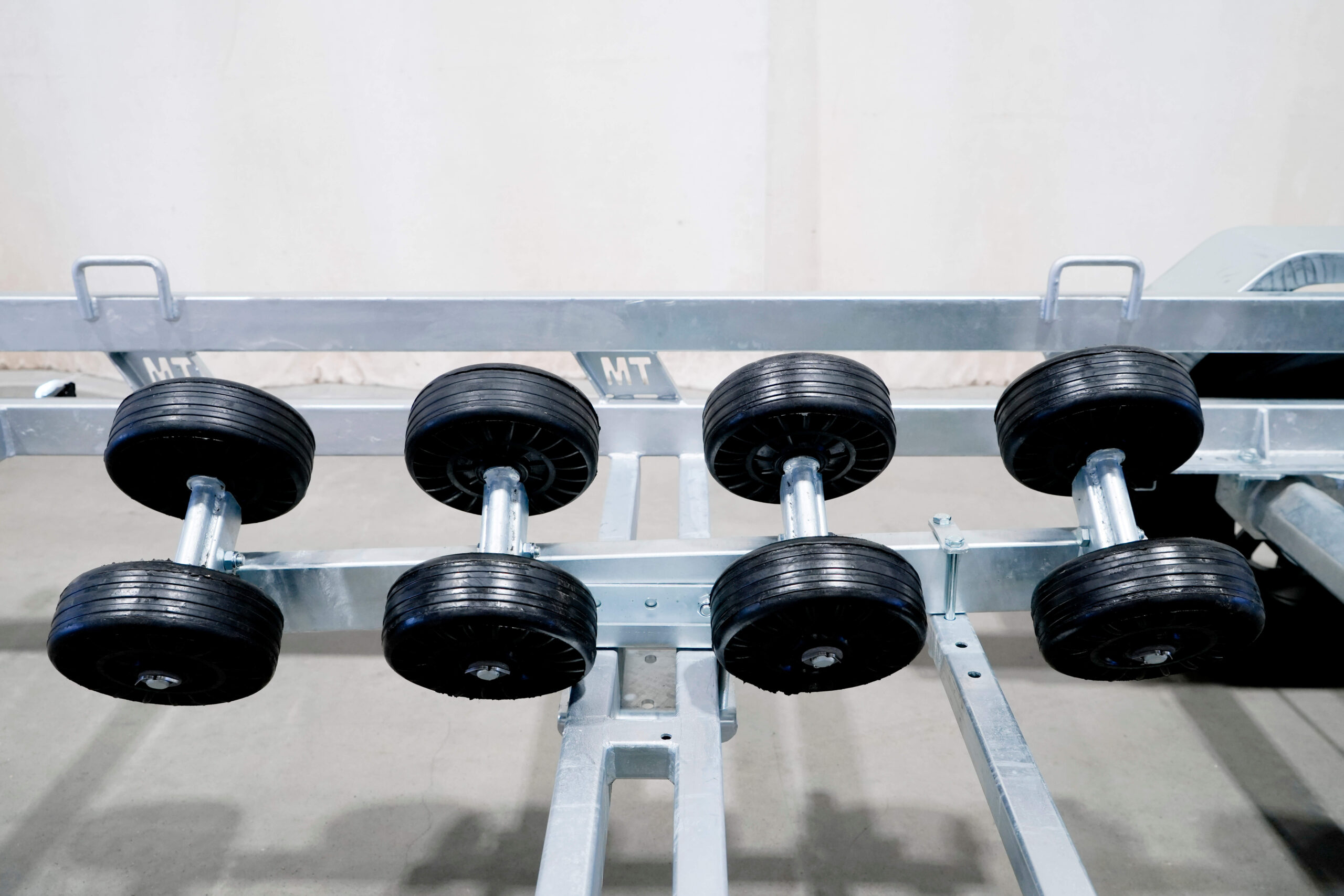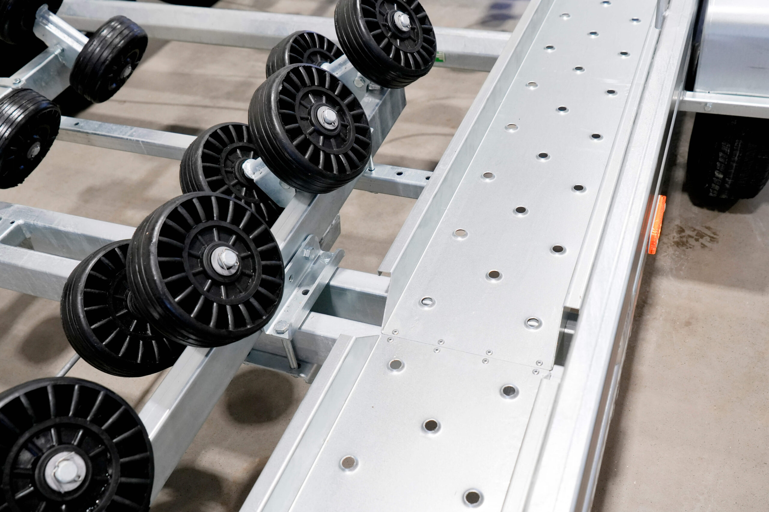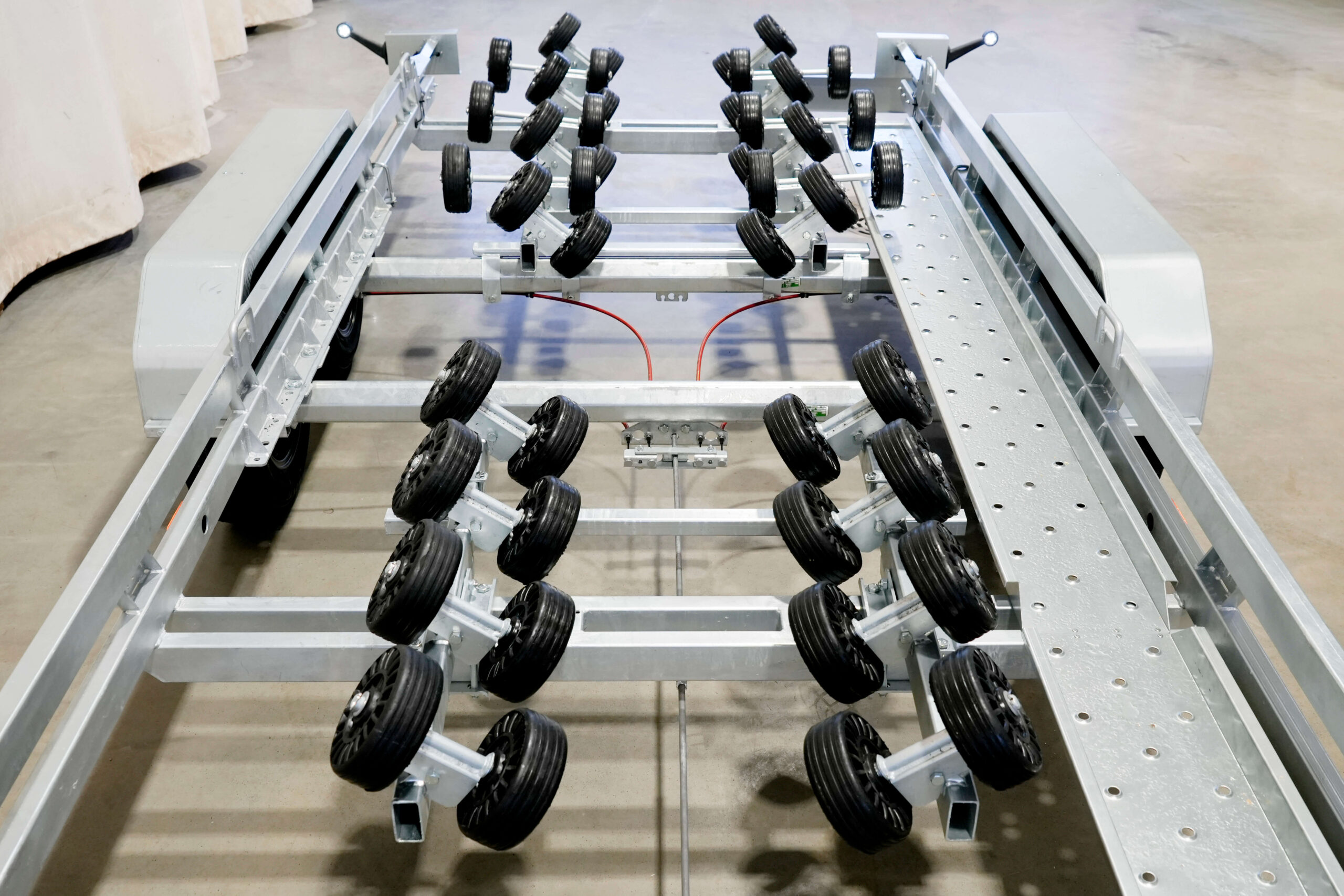 Trailermate-sarjan huippu-uutuus vaativaan käyttöön. Trailermate 2700 kg Multirulla -venetraileri on suunniteltu jopa 8,2 metriä pitkien veneiden turvalliseen ja vaivattomaan kuljettamiseen. Se soveltuu erinomaisesti niin aktiiviharrastajille kuin ammattikäyttöön. Vahva hitsattu ja kastamalla sinkitty runko takaa pitkän käyttöiän ja erinomaisen korroosiosuojan pohjoisissa olosuhteissa. Trailerin 1915 kg kantavuus ja 2700 kg kokonaismassa tarjoavat riittävästi kapasiteettia suuremmillekin veneille. Innovatiivinen Multirulla-rakenne (44 rullaa) jakaa veneen painon tasaisesti, suojaa runkoa ja helpottaa merkittävästi kuormausta sekä vesillelaskua. Kestävät mutta pehmeät rullat ohjaavat veneen luonnollisesti oikeaan asentoon ja ehkäisevät pintavaurioita. Trailermate Multirulla -venetraileri on rakennettu kestämään – turvallinen, helppokäyttöinen ja luotettava valinta veneilyyn Suomessa.